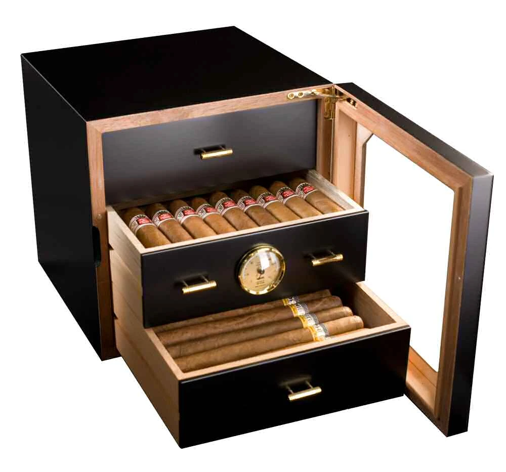 * Pre-calibrated high precision hair hygrometer, optimized for cigar storage.