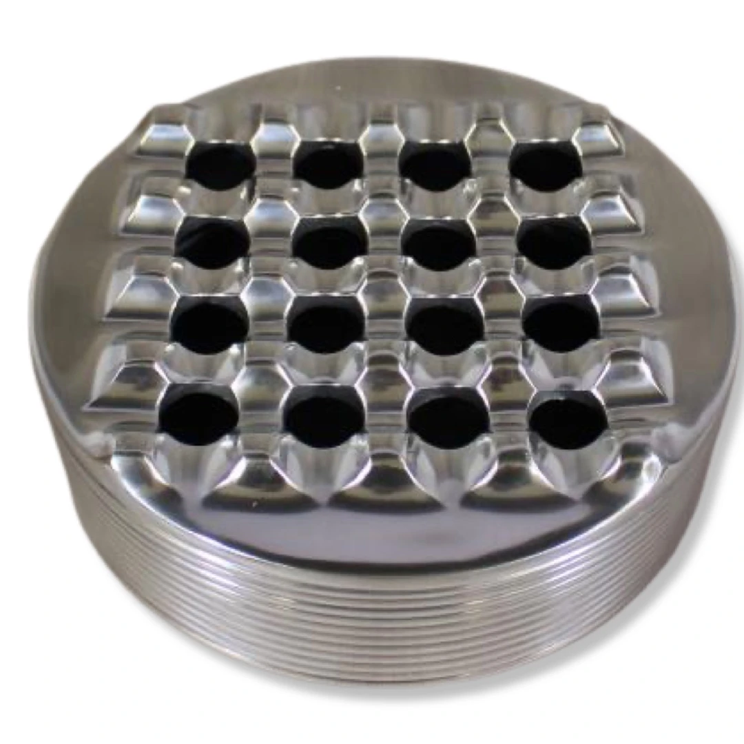 Introducing our handcrafted polished aluminium ashtray, a perfect addition to your indoor or outdoor smoking experience. This large round grid ashtray is designed with 16 holes and notches, providing ample room for resting your cigars. Simply lay your favorite ring gauge stick on top and let the ash gracefully fall into the deep pewter tray below.