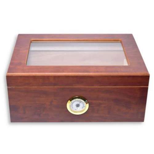 This matte brown humidor will store up to 40 of your cigars, the included hygrometer and humidifier will help keep them in perfect conditions.