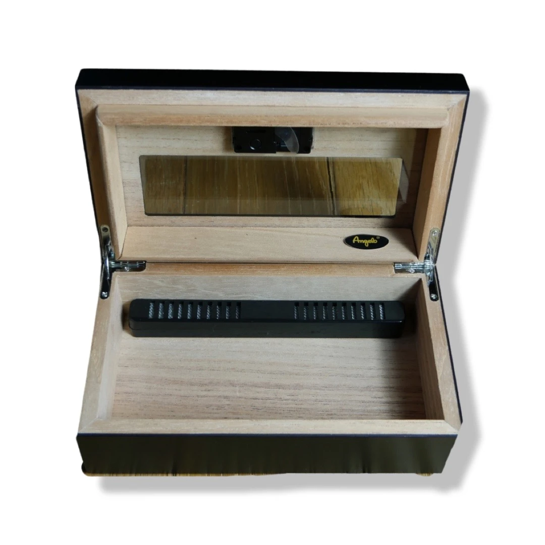 The perfect sleek desk top humidor, storing a handful of your beloved smokes. An easy and practical humidor.