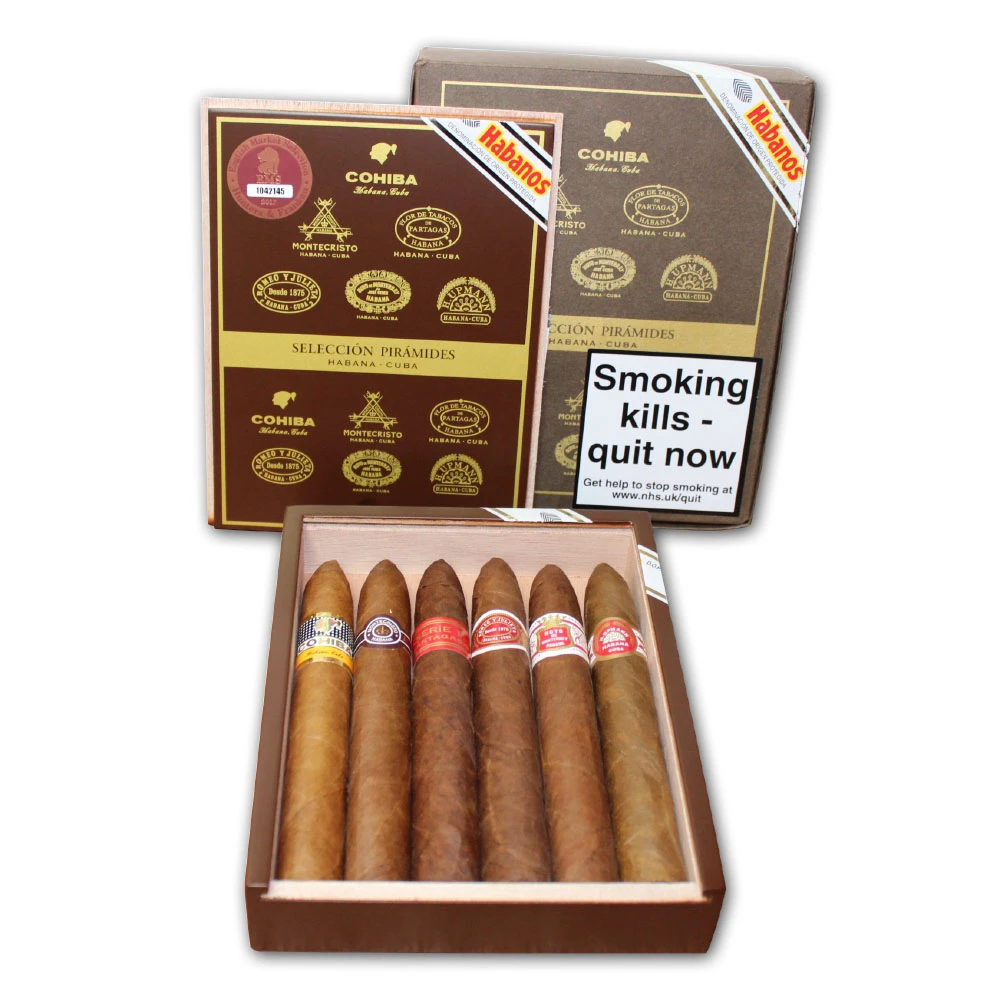 The EMS Seleccion Piramides Gift Box is a must-have for cigar aficionados, offering a stylish and eye-catching selection of some of the most popular and well-regarded brands in the world. Contained within this slick multi-branded slide lid box are six high-quality cigars, including three that you won’t find in the standard portfolios of Romeo y Julieta, Cohiba, and Hoyo de Monterrey.