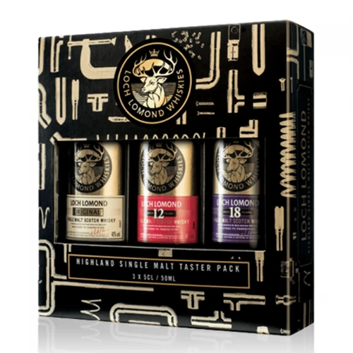 This fantastic collection assembles Loch Lomond’s three current Highland single malt offerings: – Loch Lomond Original