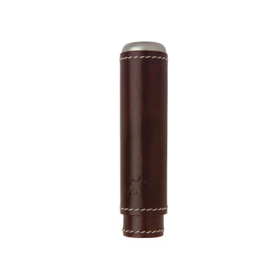 This telescoping case can up to a Churchill length cigar, up to 58 ring gauge. With top-grain, armada leather, each piece has a well-dressed appearance and a soft feel. Contrast stitching secures the leather, giving it a contemporary look. The inner lining of the crush-proof case, crafted with genuine Spanish cedar, holds the ambient humidity of the cigar and projects the fresh cedar smell of a humidor on every opening. Stylish metal caps cover each end, reinforcing the strength of the case.